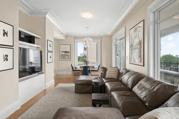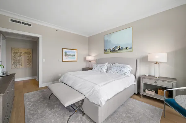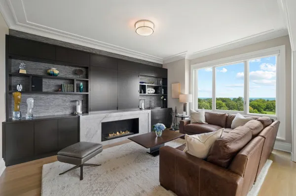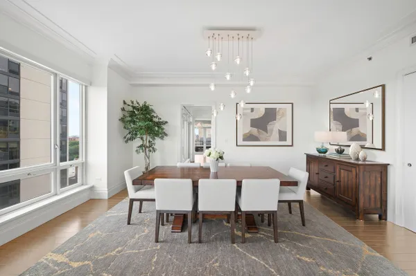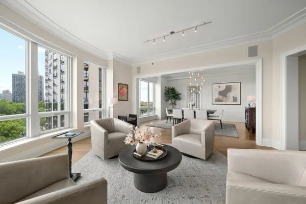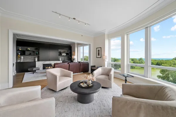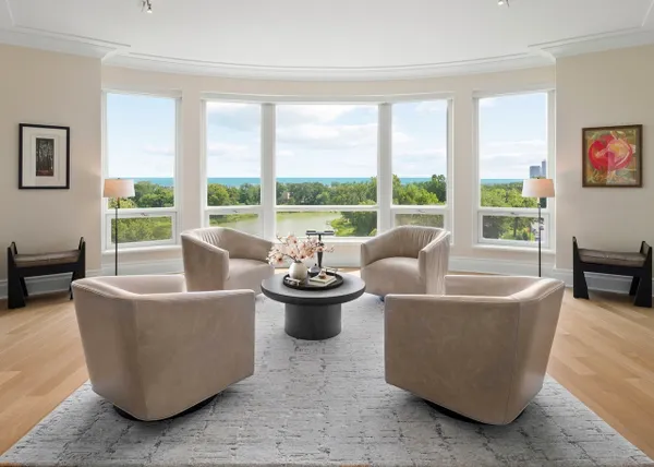 Residence S701, a Southeast corner 3 bedroom/3.1 bathroom home in the highly coveted, Lucien LaGrange-designed, Lincoln Park 2550. This remarkable home offers 4,000 square feet of thoughtfully designed living space, picturesque views from three terraces, and best-in-class amenities. Throughout the home - one of the largest in the building - floor-to-ceiling windows offer family and guests breathtaking and panoramic views of Lake Michigan, Lincoln Park, North Pond, and the Chicago skyline - views that change with the seasons and shift with the day's light. Inside the home, floor-to-ceiling windows bathe the interior spaces with light, inviting the natural beauty of the outdoors in. The focal point of the large formal living room is once again the view, this time visible through a bright wall of windows that curve the entire width of the space and amplify the 180-degree cityscape. The adjoining den and large dining room are clearly defined spaces, but are capable together of accommodating a large gathering. Sophisticated and elegant finishes are found throughout the home including the kitchen which features Caesarstone quartz countertops with island seating, customized Snaidero cabinetry and top of the line appliances including Subzero, Wolf, and two Miele dishwashers. The pass through butler's pantry adds storage, a wet bar, and temperature controlled wine storage. The south terrace, accessible from the kitchen, has gas grill hook-up and is large enough for a seated meal. Stepping off the kitchen, a comfortably sized family room provides the perfect setting for a relaxing evening or enjoy sunsets on the western terrace. The largest of the three, this 44x12-foot covered terrace overlooks the stunning manicured gardens and fountain within the 1.5-acre gated, private park. Back inside, the substantial primary bedroom is a peaceful retreat and includes its own east facing terrace, two walk-in closets, and spa-quality bathroom with dual vanity sinks, great storage, soaking tub, and an aromatherapy steam shower. Two additional bedrooms, both ensuite with private bathrooms and walk-in closets make perfect sanctuaries for family or guests. Key features throughout this large-scale home include: wide plank oak flooring, custom millwork and built-ins, smart home technology with centralized media and climate control, built-in speakers, programmable lighting, and Lutron shades. Residents of the building enjoy exceptional amenities: indoor pool with sundeck, top-of-the-line fitness center, sauna and steam rooms, movie theater, newly renovated party/event room with amazing kitchen, game and billiards room, massage rooms, on-site dry cleaner, dog run, private playground and an exceptional team of 24/7 door staff. Two large storage spaces and two parking spots with guest passes and optional valet service are included.