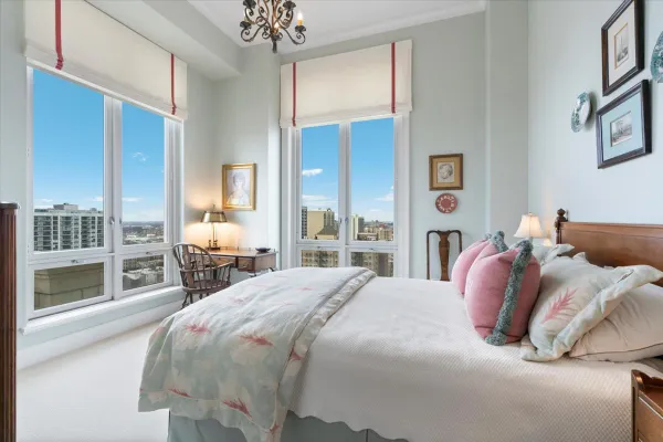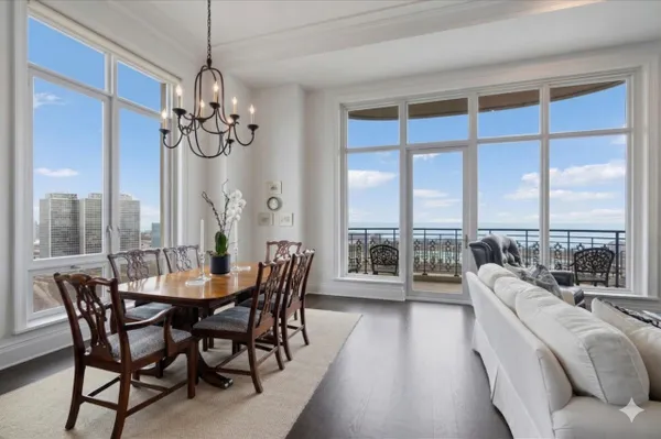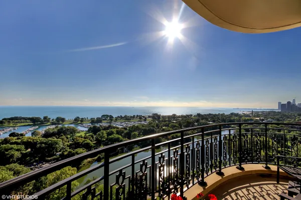 Experience a rare opportunity in the iconic Lincoln Park 2550! This stunning 3-bedroom, 3-bathroom residence is located on a high floor and features breathtaking wraparound views of the lake, harbor, park, and city. Enjoy captivating sunrises and sunsets from this spacious open floor plan, situated in the coveted northeast corner, with 2,140 square feet of interior space and two terraces totaling 161 square feet. The impressive 12-foot ceilings, available on only a few floors in the building, enhance the sense of space and transform this unit into a grand version of the highly sought-after 04 floor plan. A gracious entryway leads to an open living and dining room that offers access to two terraces with spectacular water vistas. The custom chef's kitchen includes large marble countertops with a marble backsplash, a breakfast bar, and custom bookcases. It is equipped with high-end Sub-Zero, Wolf, and Miele appliances, as well as a wine refrigerator. The spacious primary suite boasts east-facing views, while the en-suite marble bath features a double vanity, a separate shower, and a soaking tub. The second bedroom is a gracious en-suite retreat showcasing stunning west and north-facing city views. The third bedroom features a custom bookcase with a built-in queen-size Murphy bed, offering flexibility for guests, a home office, or additional living space. Additional highlights include 5-inch-wide hardwood plank floors, custom crown and base molding. Two deeded parking spaces, and 2 storage rooms included. Don't miss out on this exceptional living experience!