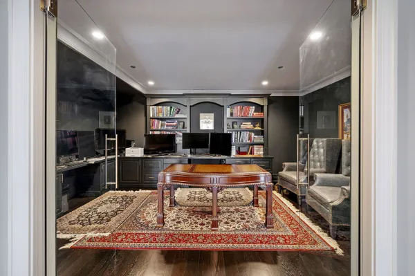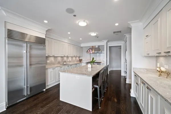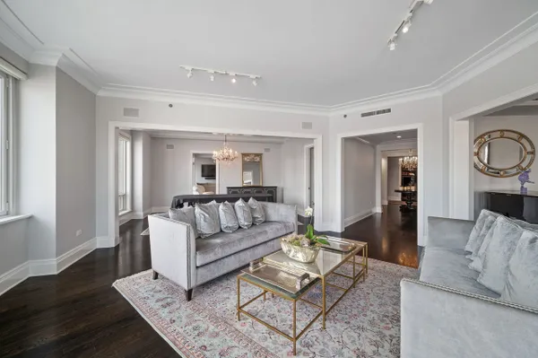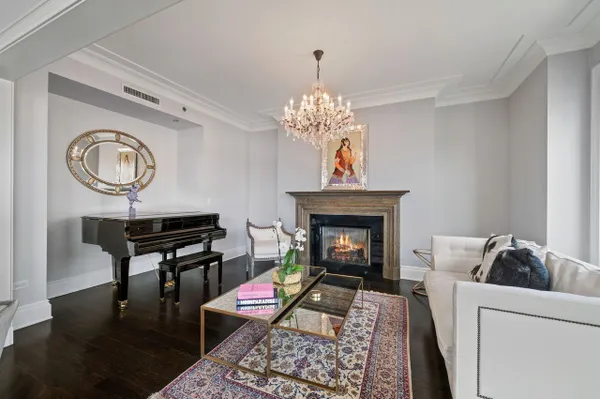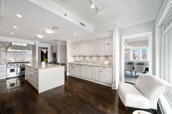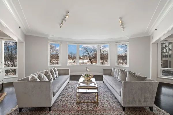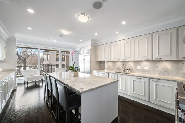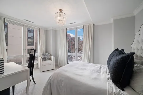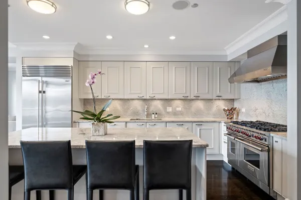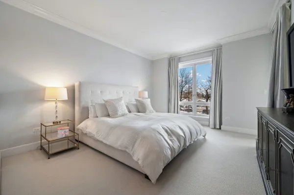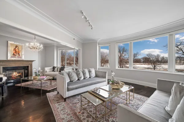 Residence S201, a southeast corner 4 bedroom/4.5 bathroom home in the highly coveted, Lucien LaGrange-designed, Lincoln Park 2550. This remarkable home offers over 5,100 square feet of thoughtfully designed living space, two terraces, a large private office and best-in-class service and amenities. Throughout the home - one of the largest in the building - oversized windows offer family and guests panoramic views of Lincoln Park and North Pond; views that change with the seasons and shift with the day's light. In the formal living room, the natural beauty of Lincoln Park is on full display, visible through a bright wall of windows that curve the entire width of the space. The adjoining den and large dining room are each clearly defined spaces, but are capable together of accommodating a large gathering. Sophisticated and elegant finishes are found throughout the home including the kitchen which features stone countertops with island seating, customized Snaidero cabinetry and top of the line appliances including Subzero, Wolf, and two Miele dishwashers. The passthrough butler's pantry adds storage and a wet bar. The south terrace, accessible from the kitchen, has gas grill hook-up and is large enough for a seated meal. Just off the kitchen, a comfortably sized family room includes a built-in desk and provides the perfect pre-meal family gathering space. The substantial primary bedroom is a peaceful retreat and includes its own east facing terrace, two walk-in closets, and spa-quality bathroom with dual vanity sinks, great storage, soaking tub, and separate shower. In addition to the dedicated office space, the home has three additional bedrooms. Two are ensuite with private bathrooms and walk-in closets making them perfect sanctuaries for family or guests. The third has a full bathroom just across the hall. Key features throughout this large-scale home include: wide plank oak flooring, custom millwork and built-ins, smart home technology with centralized media and climate control, built-in speakers, and motorized shades. Residents of the building enjoy exceptional amenities: indoor pool with sundeck, top-of-the-line fitness center, sauna and steam rooms, movie theater, newly renovated party/event room with amazing kitchen, game and billiards room, massage rooms, on-site dry cleaner, dog run, private playground and an exceptional team of 24/7 door staff. Three side-by-side parking spaces paired with large storage rooms are an additional $50k each and come with guest passes and optional valet service.